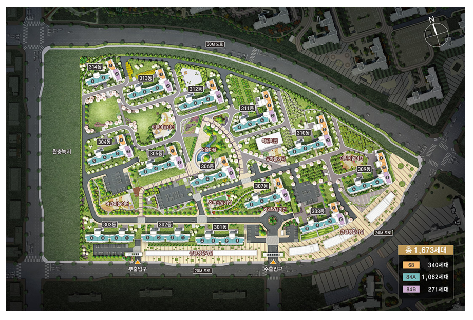 세대수 총 1673세대의 대단지이며 주차는 총 2241대를 수용합니다. 6884 총 1673세대. 오송파라곤 분양팀 추천으로.