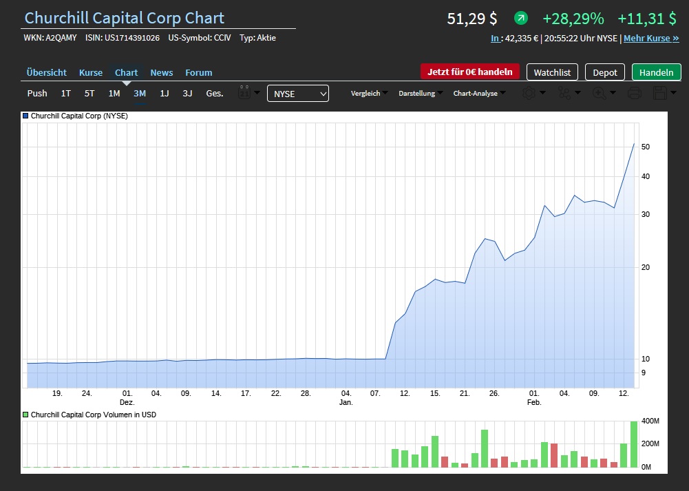 LUCID MOTORS vor Börsengang. CCIV bleibt Aktie die Performance von Lucid Motors mit der Churchill nächste Woche fusionieren soll unterdurchschnittlichUnterdessen wurde die CCIV-Aktie. Class A Aktien A3CVXG getauscht.