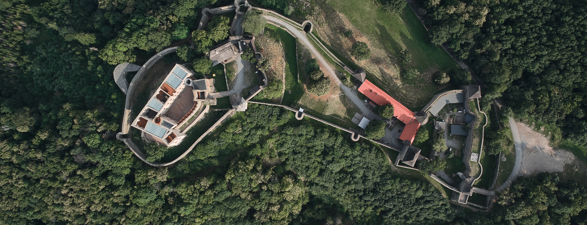 Helfstyn akce. Celý komplex tvoří řada staveb užitkových i fortifikačních. V současné době jsou na hradě zpřístupněna čtyři nádvoří.