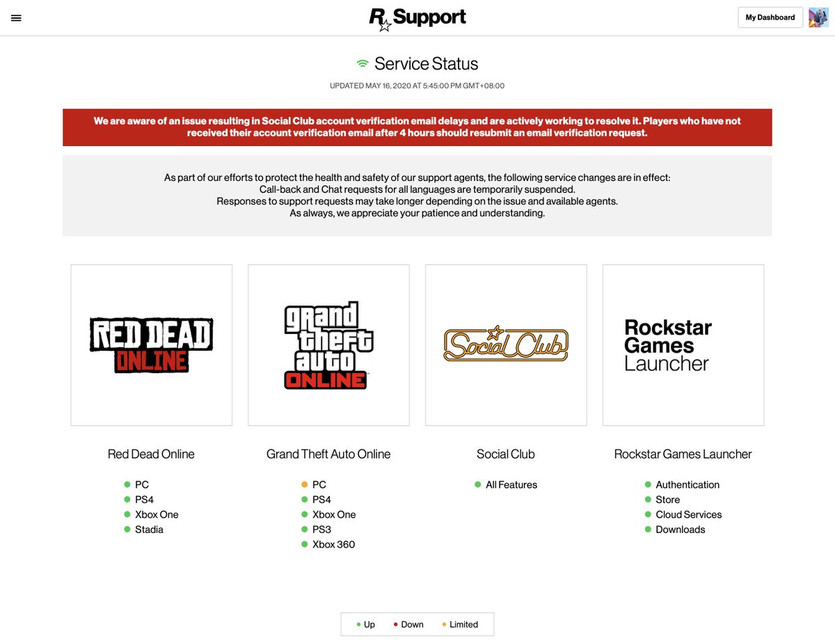 Rockstar Support On Twitter You Can Find Our Server Status Page Here Https T Co Fxlq04jloq Jw