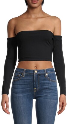 Off Shoulder Long Sleeve Crop Top In Black Outfitbook